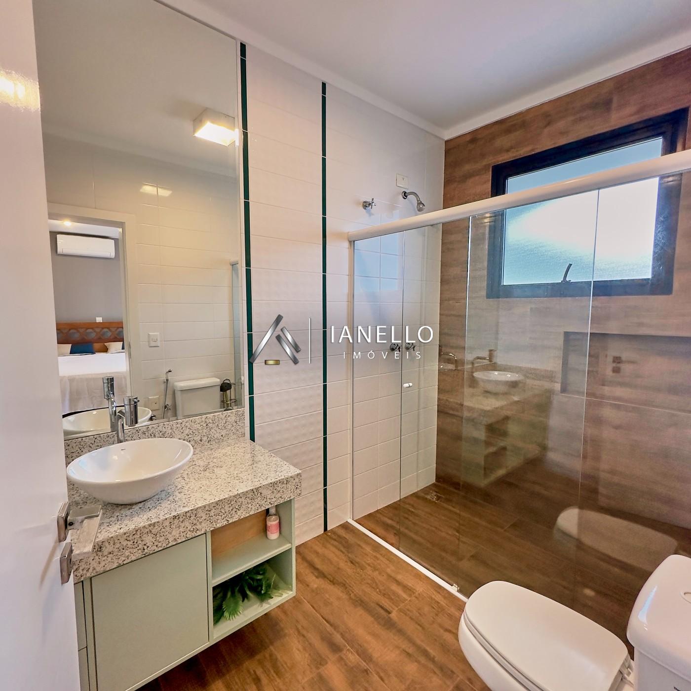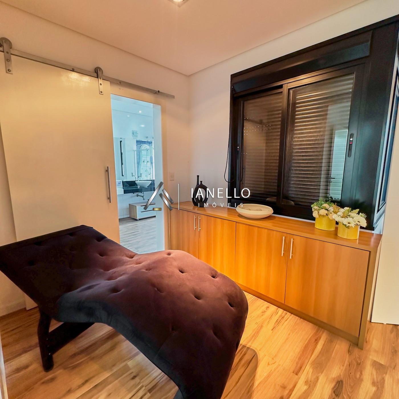 A área Íntima dispõe de 3 suítes confortáveis, sendo uma delas uma suíte master que conta com closet e hidromassagem, proporcionando um espaço privativo e luxuoso para relaxar.