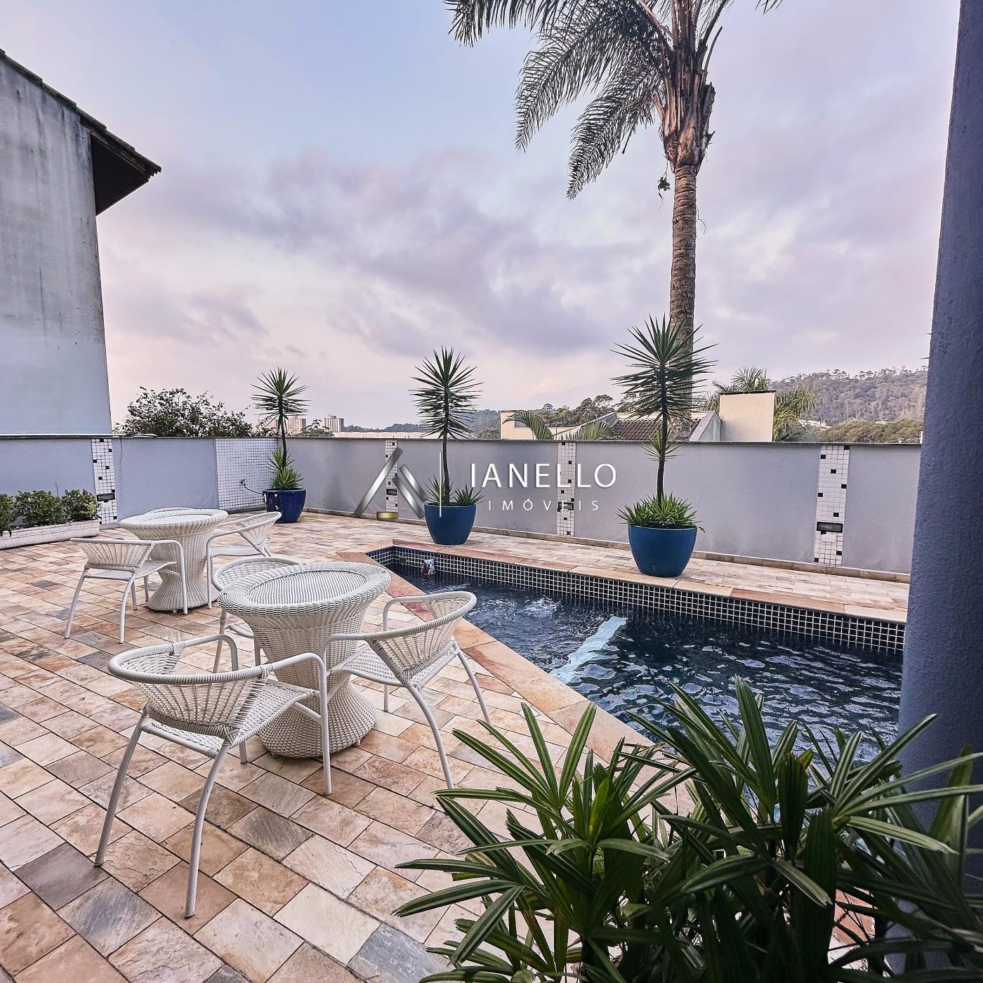 O espaço gourmet é integrado a um belo salão amplo, que pode ser dividido em dois ambientes, perfeito para receber amigos e familiares. Este espaço fica ao lado do quintal, que abriga uma linda piscina, ideal para os dias ensolarados.