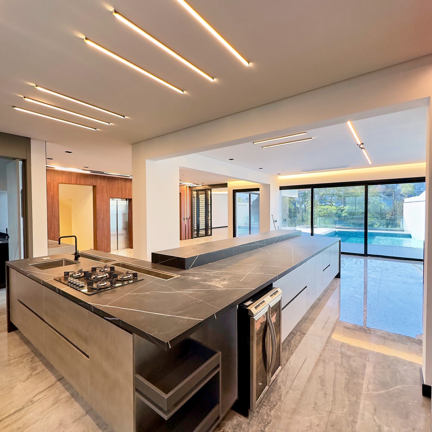 Os ambientes de convivência foram projetados para encantar: salas integradas de estar, jantar e TV, cozinha gourmet de tirar o fôlego e uma adega climatizada para momentos especiais.