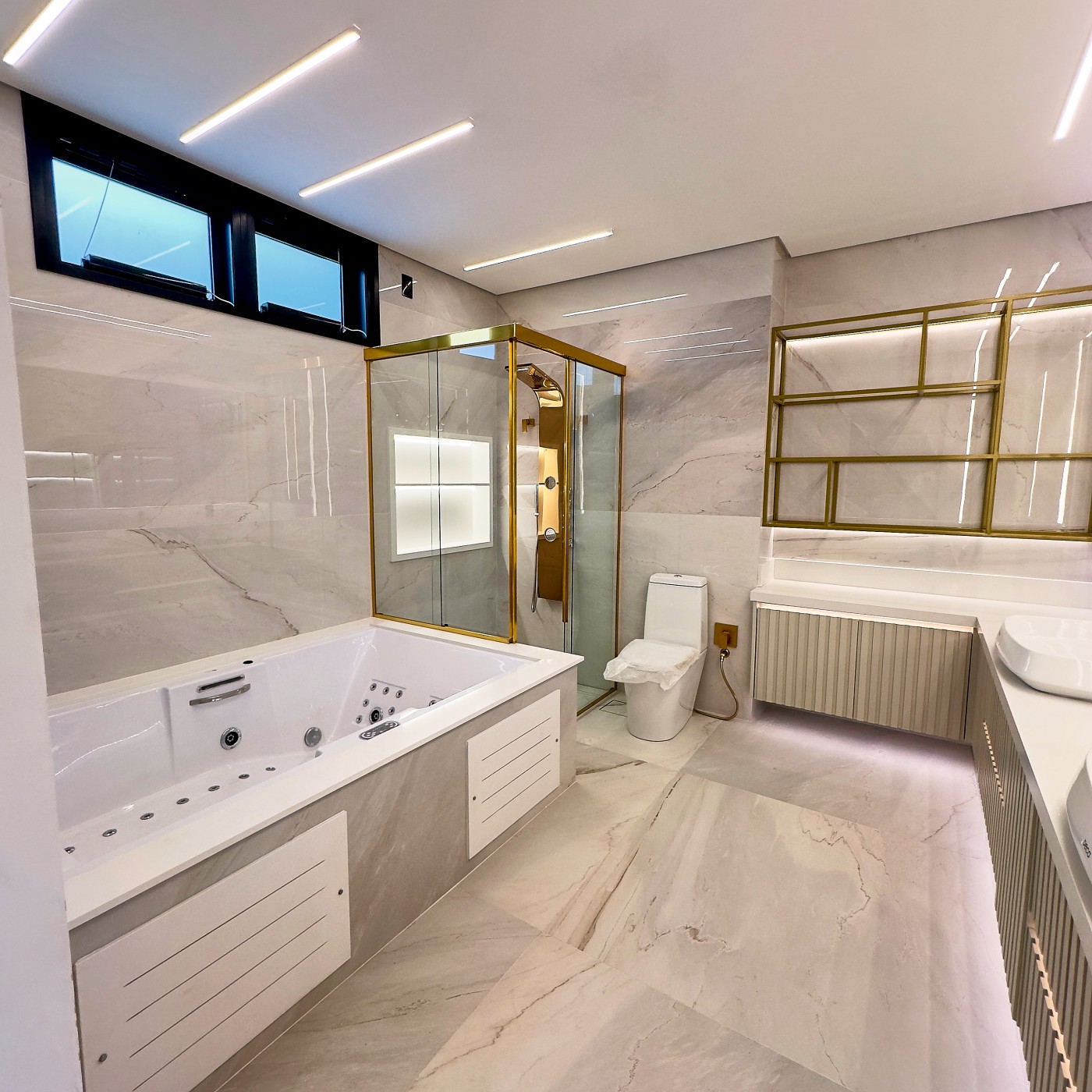 São 4 suítes amplas, incluindo uma máster digna de um verdadeiro refúgio privativo, com closet e hidromassagem.
