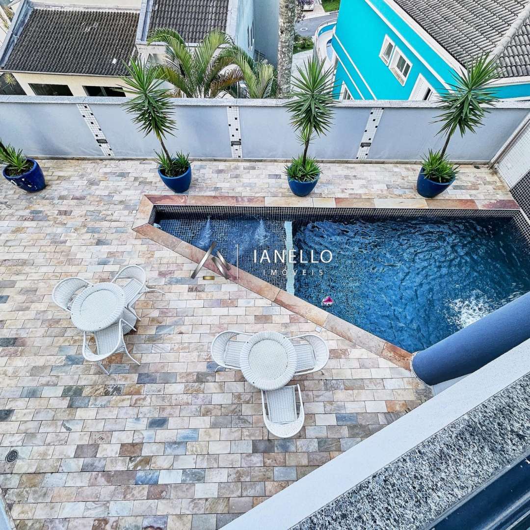 O espaço gourmet é integrado a um belo salão amplo, que pode ser dividido em dois ambientes, perfeito para receber amigos e familiares. Este espaço fica ao lado do quintal, que abriga uma linda piscina, ideal para os dias ensolarados.