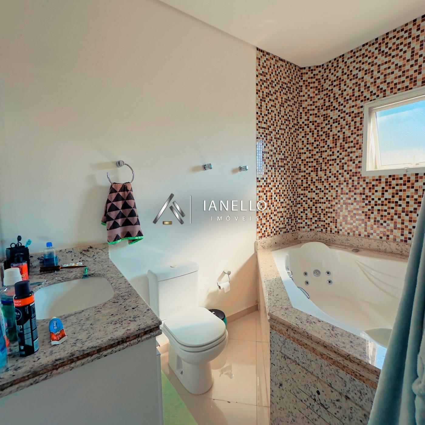 Na área íntima, o imóvel conta com 3 suítes, proporcionando conforto e privacidade, além de banheiros adicionais que atendem com praticidade às áreas sociais e de serviço.